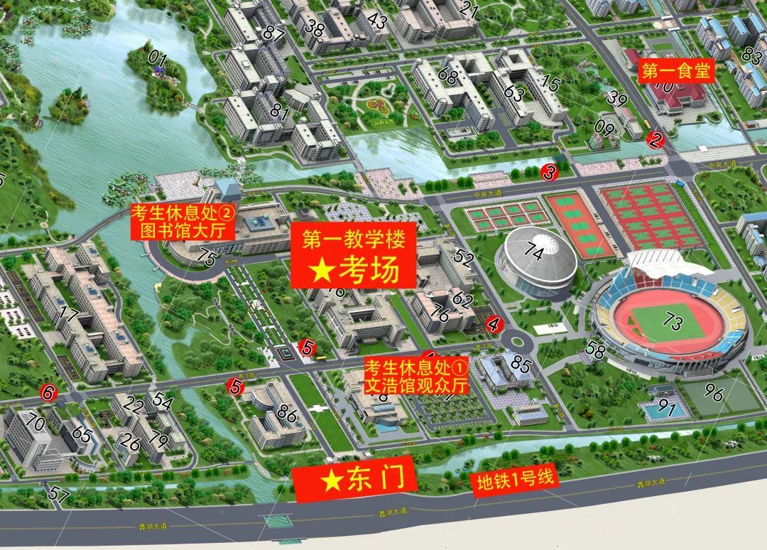 考生可乘坐地铁1号线(“开云电竞平台官网”站)、公交105路或128路(“江大东门”站)到达我校东门进入考点。